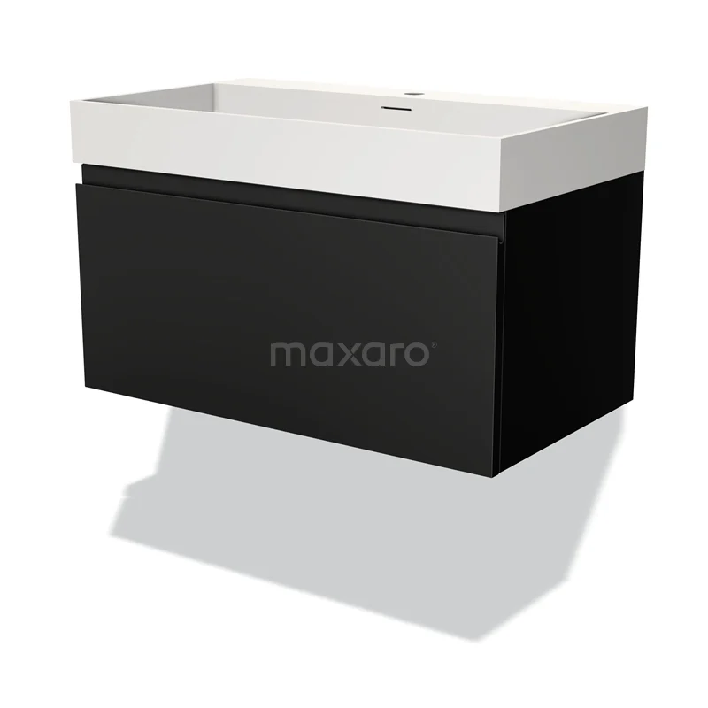 Modulo Bathroom furniture with sink | 80 cm Matte black Handle-less front Solid surface 1 drawer