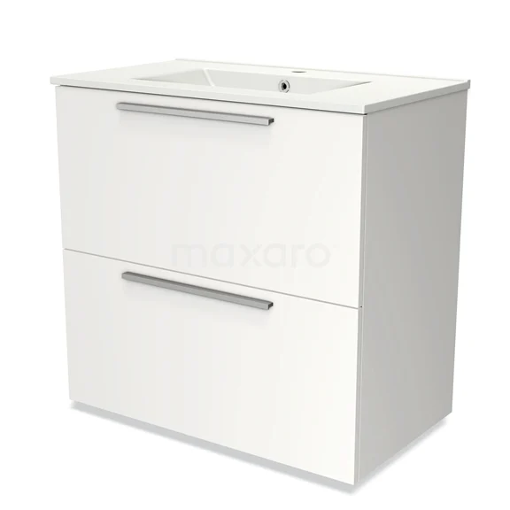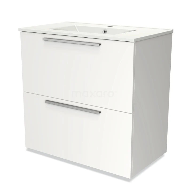 Modulo Bathroom furniture with sink | 80 cm Matte white Flat front Ceramic 2 stacked drawers under each other