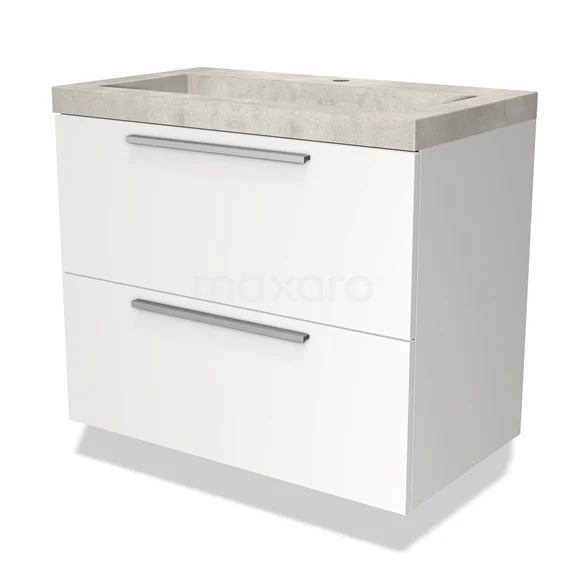 Modulo Bathroom furniture with sink | 80 cm Matte white Flat front Concrete 2 Stacked drawers