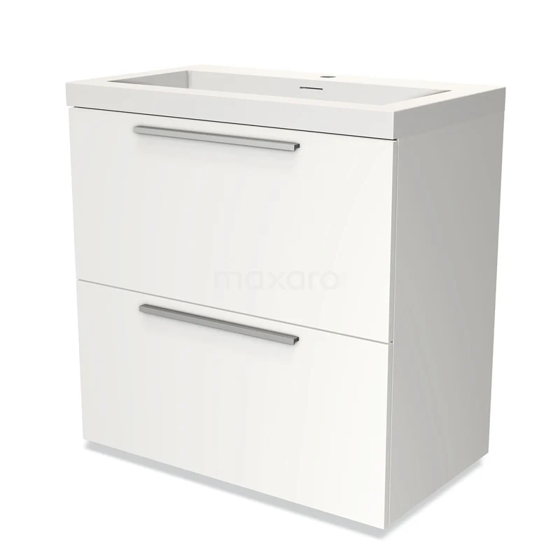 Modulo Bathroom furniture with sink | 80 cm Matte white Flat front Solid surface 2 stacked drawers under each other