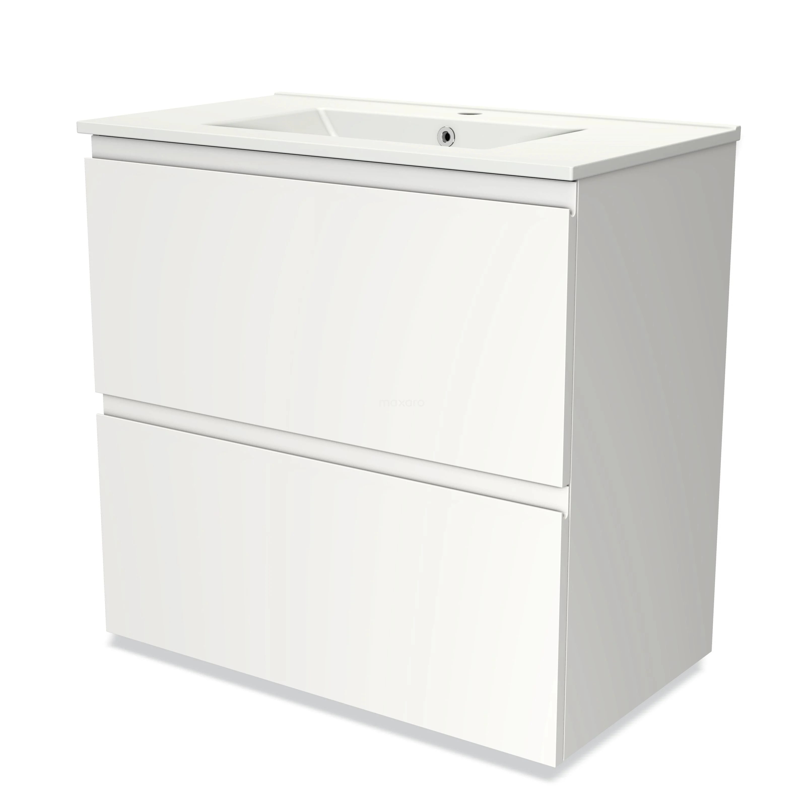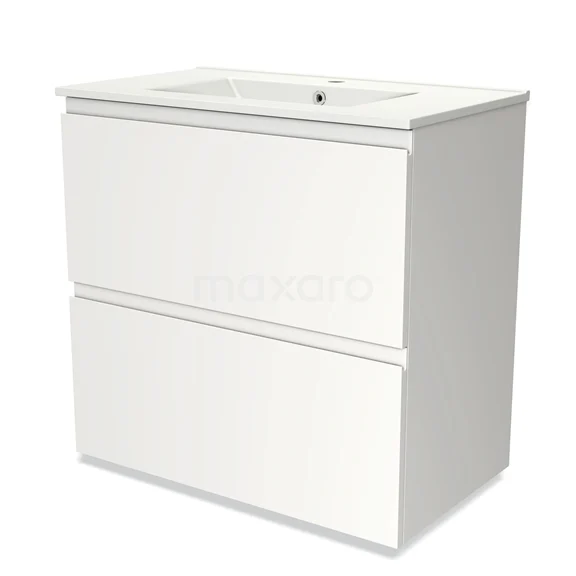 Modulo Bathroom furniture with sink | 80 cm Matte white Handle-less front Ceramic 2 stacked drawers under each other
