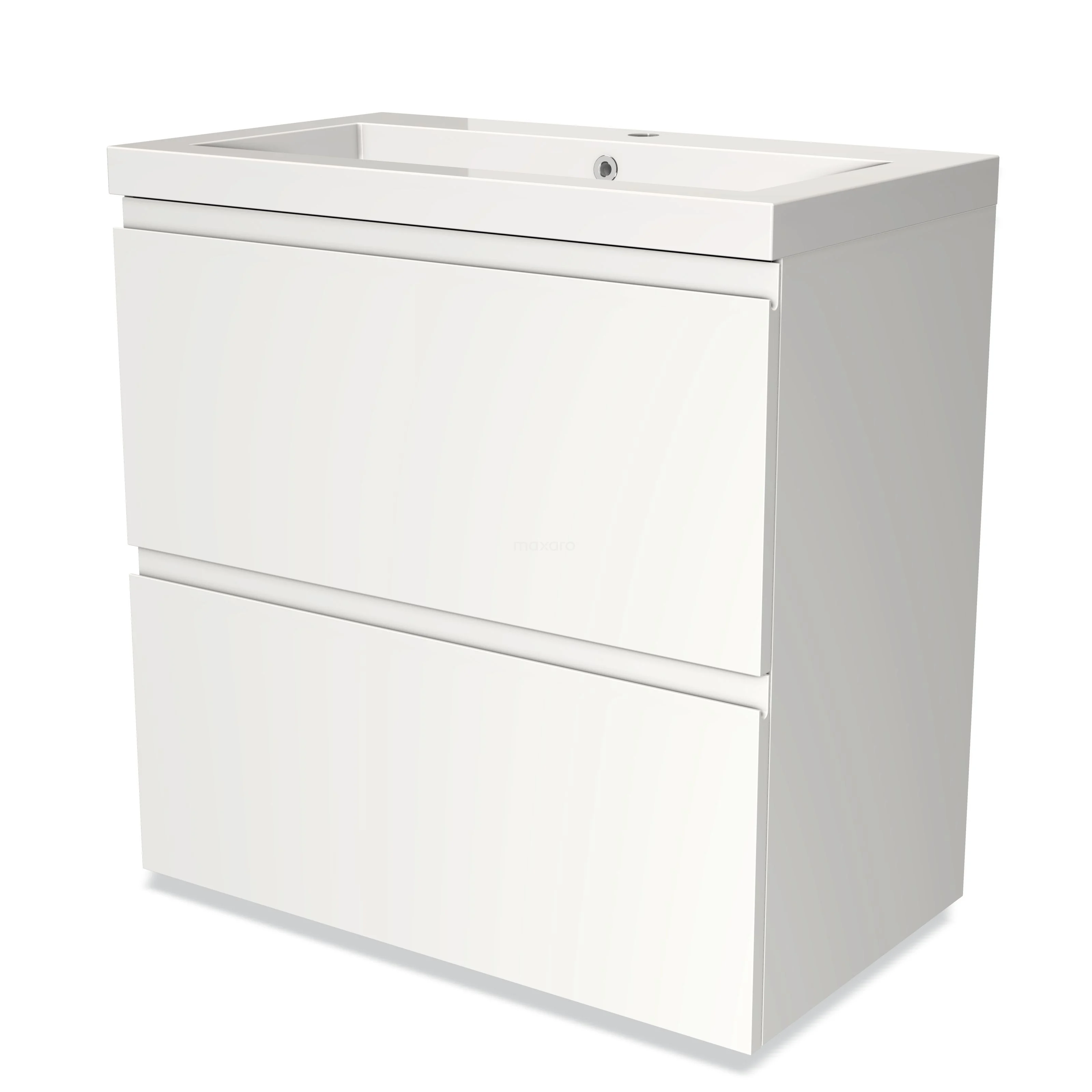 Modulo Bathroom furniture with sink | 80 cm Matte white Handle-less front Mineral marble 2 stacked drawers under each other