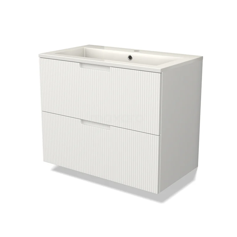 Modulo Bathroom furniture with sink | 80 cm Matte white Line front Mineral marble 2 Stacked drawers