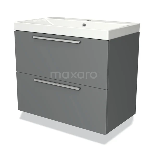Modulo Bathroom furniture with sink | 80 cm Mid grey Flat front Ceramic 2 Stacked drawers