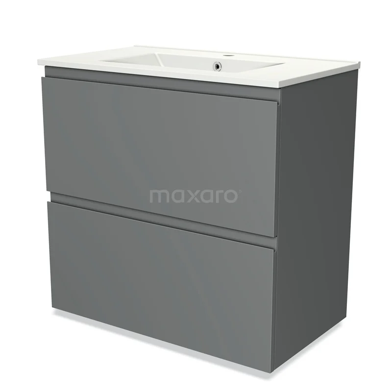 Modulo Bathroom furniture with sink | 80 cm Mid grey Handle-less front Ceramic 2 stacked drawers under each other