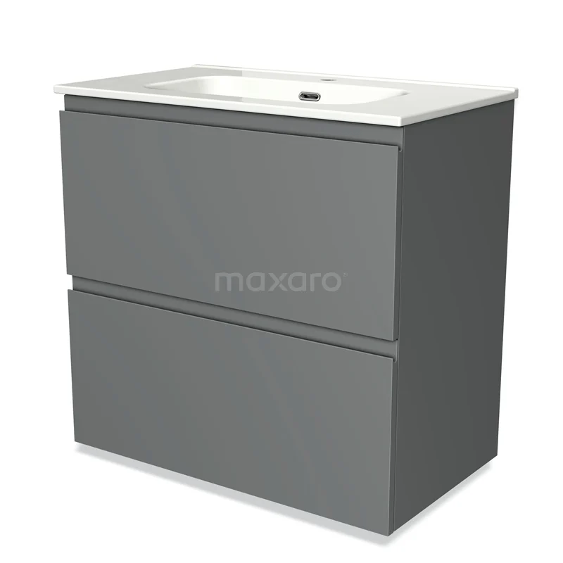 Modulo Bathroom furniture with sink | 80 cm Mid grey Handle-less front Ceramic 2 stacked drawers under each other