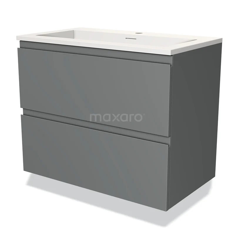 Modulo Bathroom furniture with sink | 80 cm Mid grey Handle-less front Solid surface 2 Stacked drawers