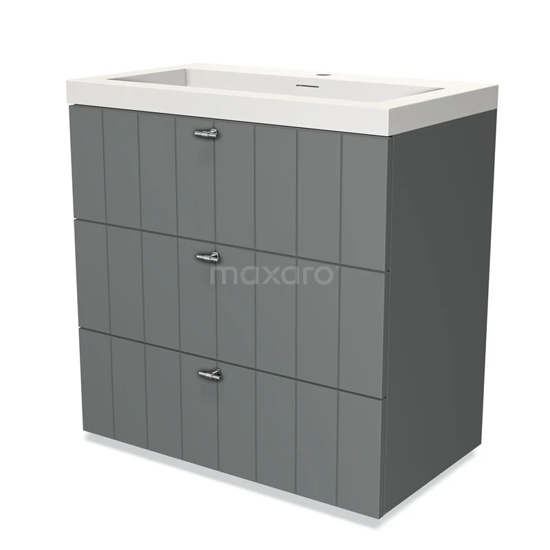 Modulo Bathroom furniture with sink | 80 cm Mid grey Slat front Solid surface 3 drawers