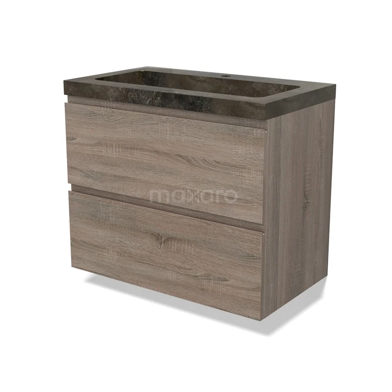 Modulo Bathroom furniture with sink | 80 cm Oak Handle-less front Natural stone 2 Stacked drawers