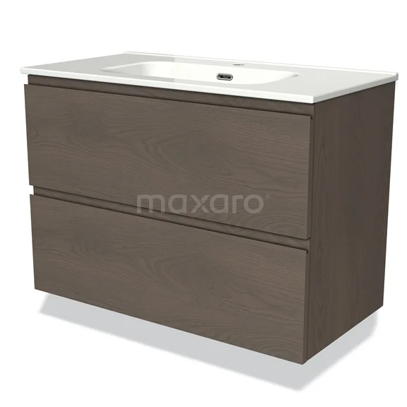 Modulo Bathroom furniture with sink | 90 cm Dark brown oak Handle-less front Ceramic 2 Stacked drawers
