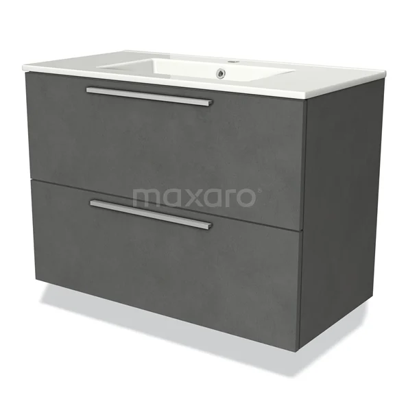 Modulo Bathroom furniture with sink | 90 cm Dark grey concrete Flat front Ceramic 2 Stacked drawers