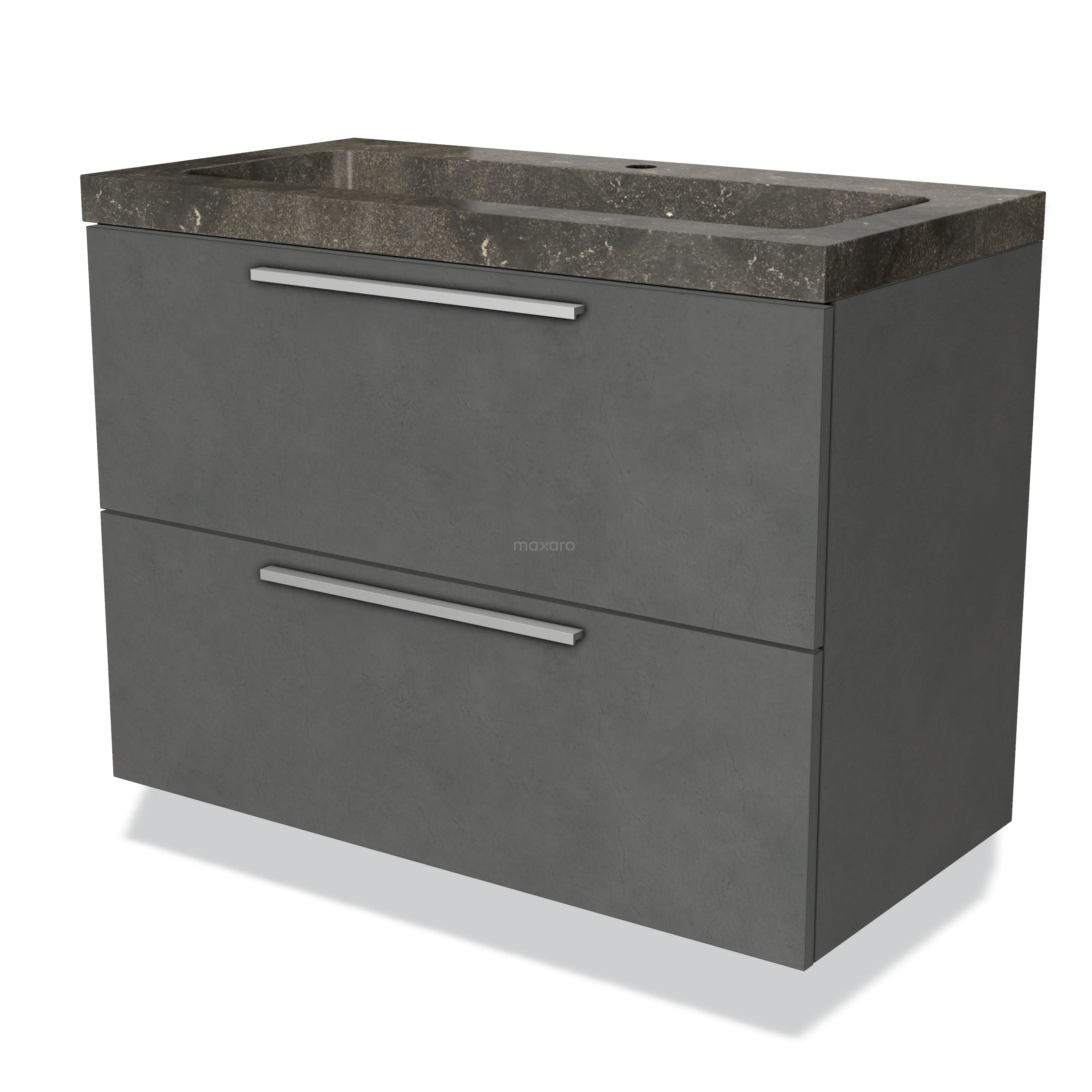 Modulo Bathroom furniture with sink | 90 cm Dark grey concrete Flat front Natural stone 2 Stacked drawers