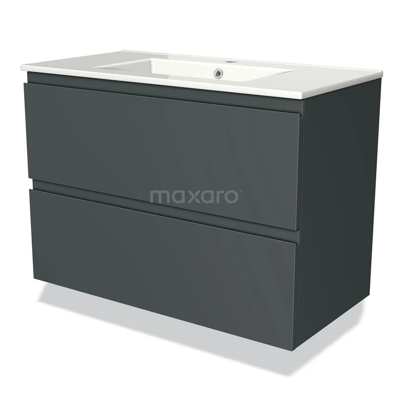 Modulo Bathroom furniture with sink | 90 cm Dark grey Handle-less front Ceramic 2 Stacked drawers
