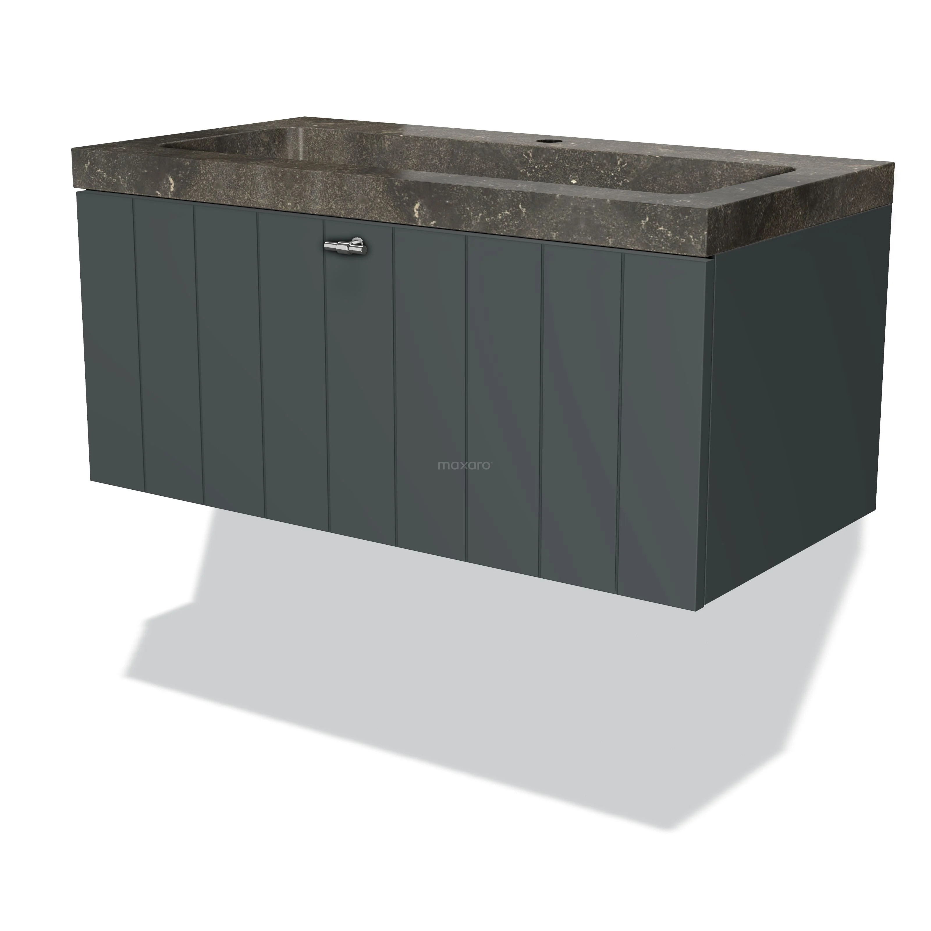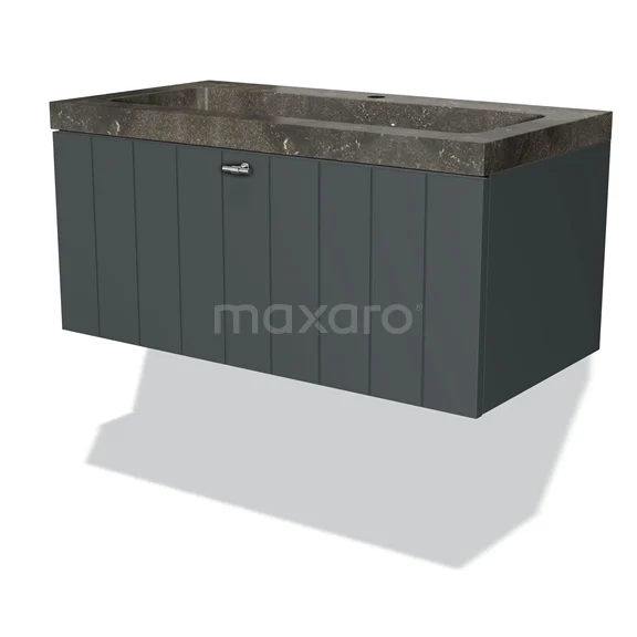 Modulo Bathroom furniture with sink | 90 cm Dark grey Slat front Natural stone 1 drawer