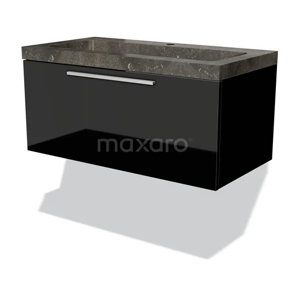 Modulo Bathroom furniture with sink | 90 cm High-gloss black Flat front Natural stone 1 drawer