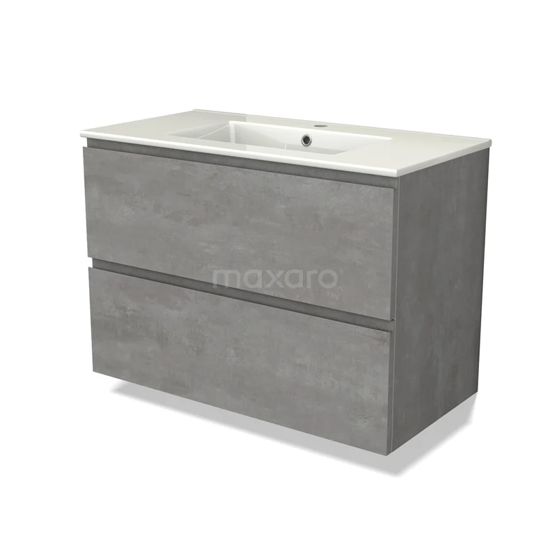 Modulo Bathroom furniture with sink | 90 cm Light grey concrete Handle-less front Ceramic 2 Stacked drawers