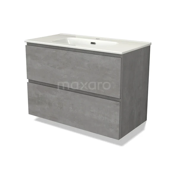 Modulo Bathroom furniture with sink | 90 cm Light grey concrete Handle-less front Ceramic 2 Stacked drawers