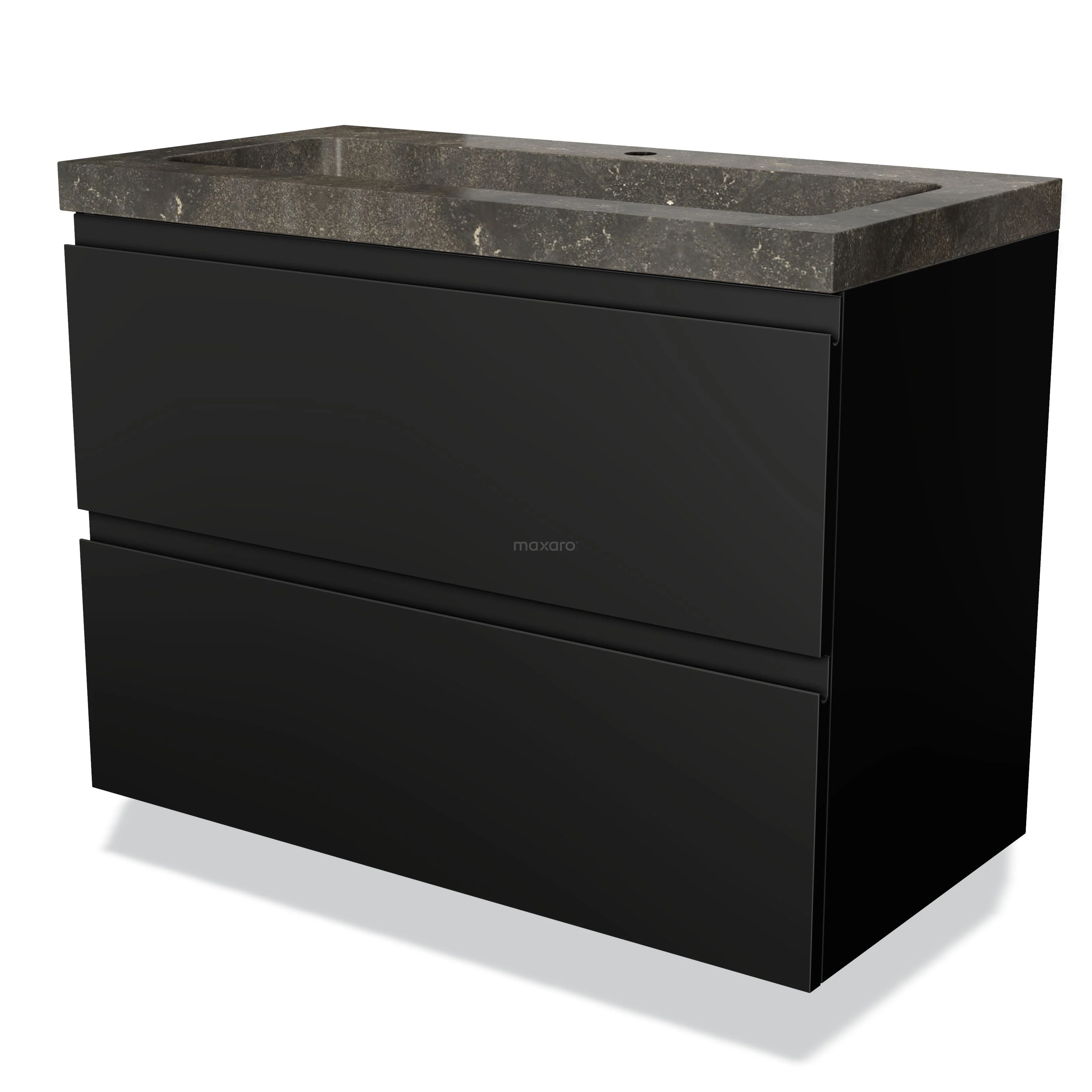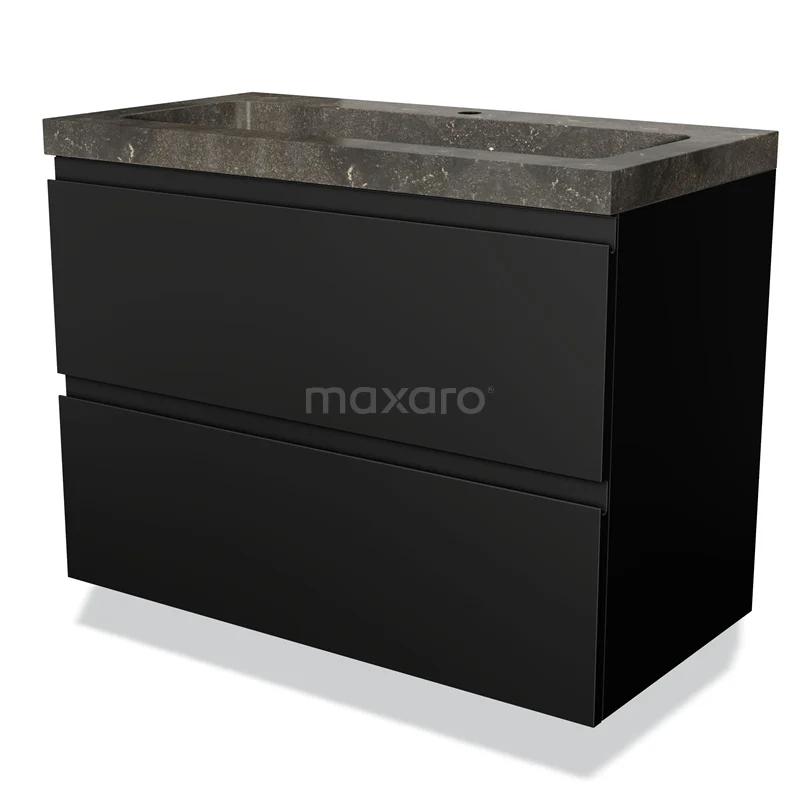 Modulo Bathroom furniture with sink | 90 cm Matte black Handle-less front Natural stone 2 Stacked drawers