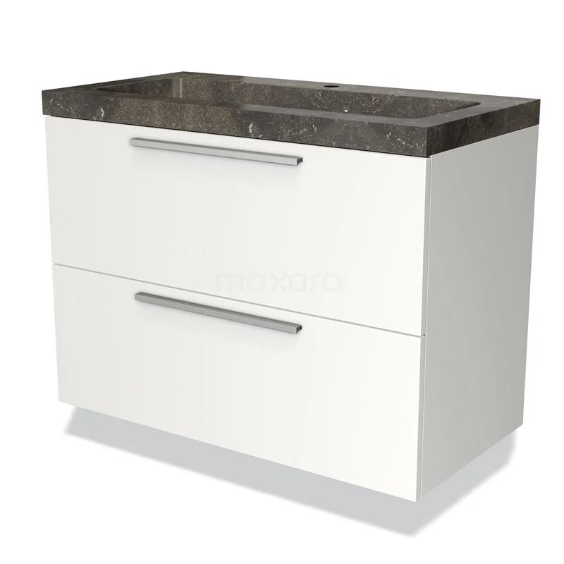 Modulo Bathroom furniture with sink | 90 cm Matte white Flat front Natural stone 2 Stacked drawers