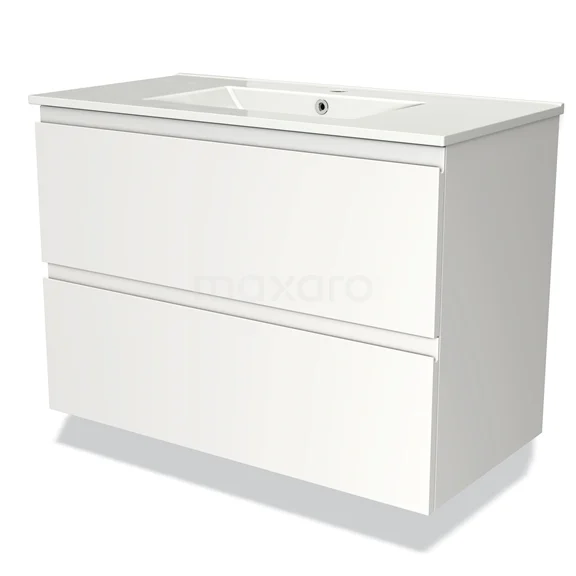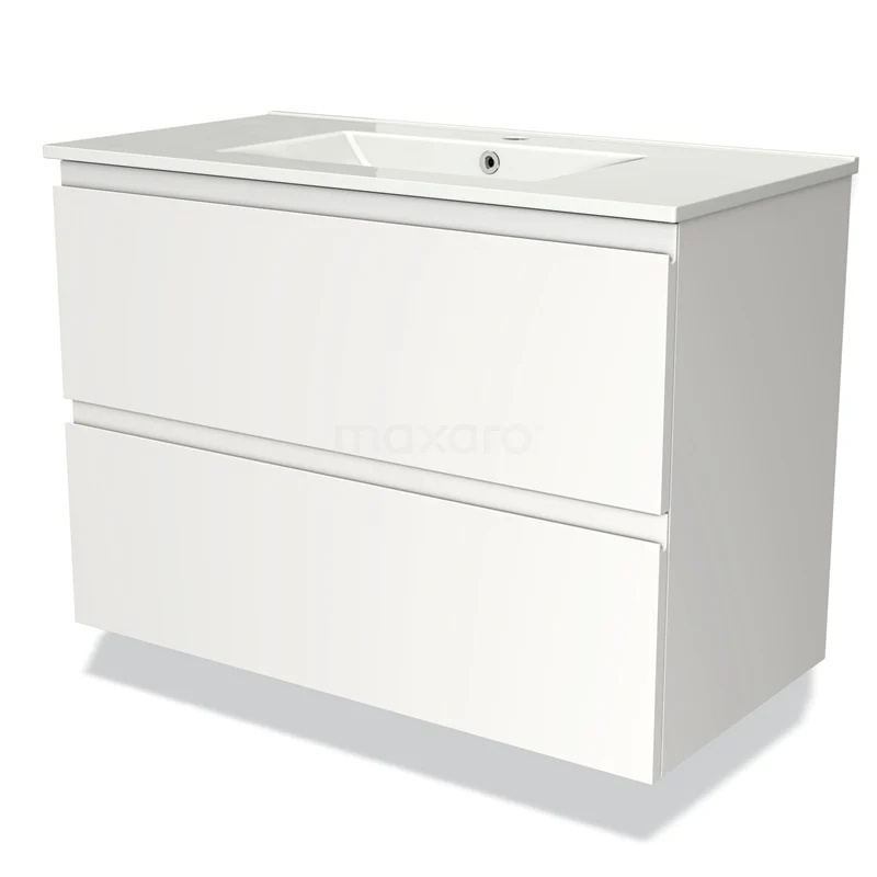 Modulo Bathroom furniture with sink | 90 cm Matte white Handle-less front Ceramic 2 Stacked drawers