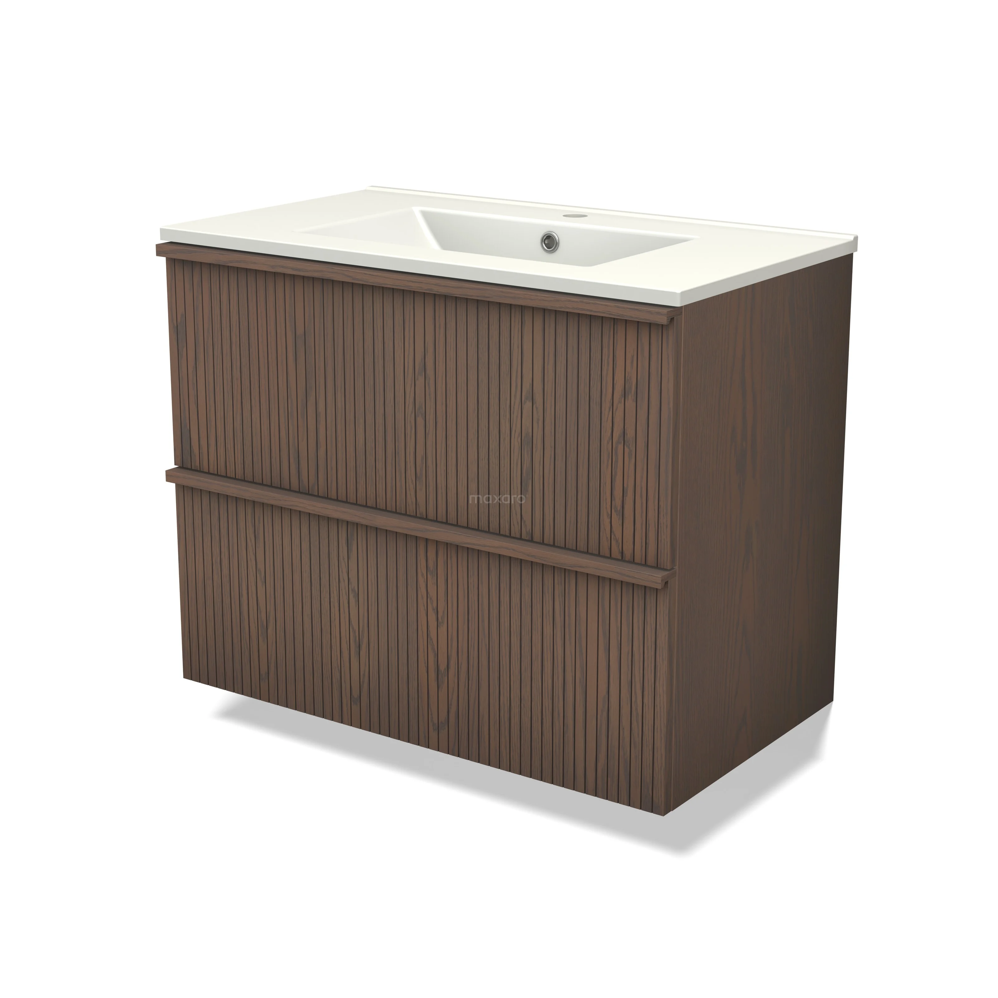 Modulo Plus Bathroom furniture with sink | 80 cm Cocoa oak Ribbing front Ceramic 2 Stacked drawers