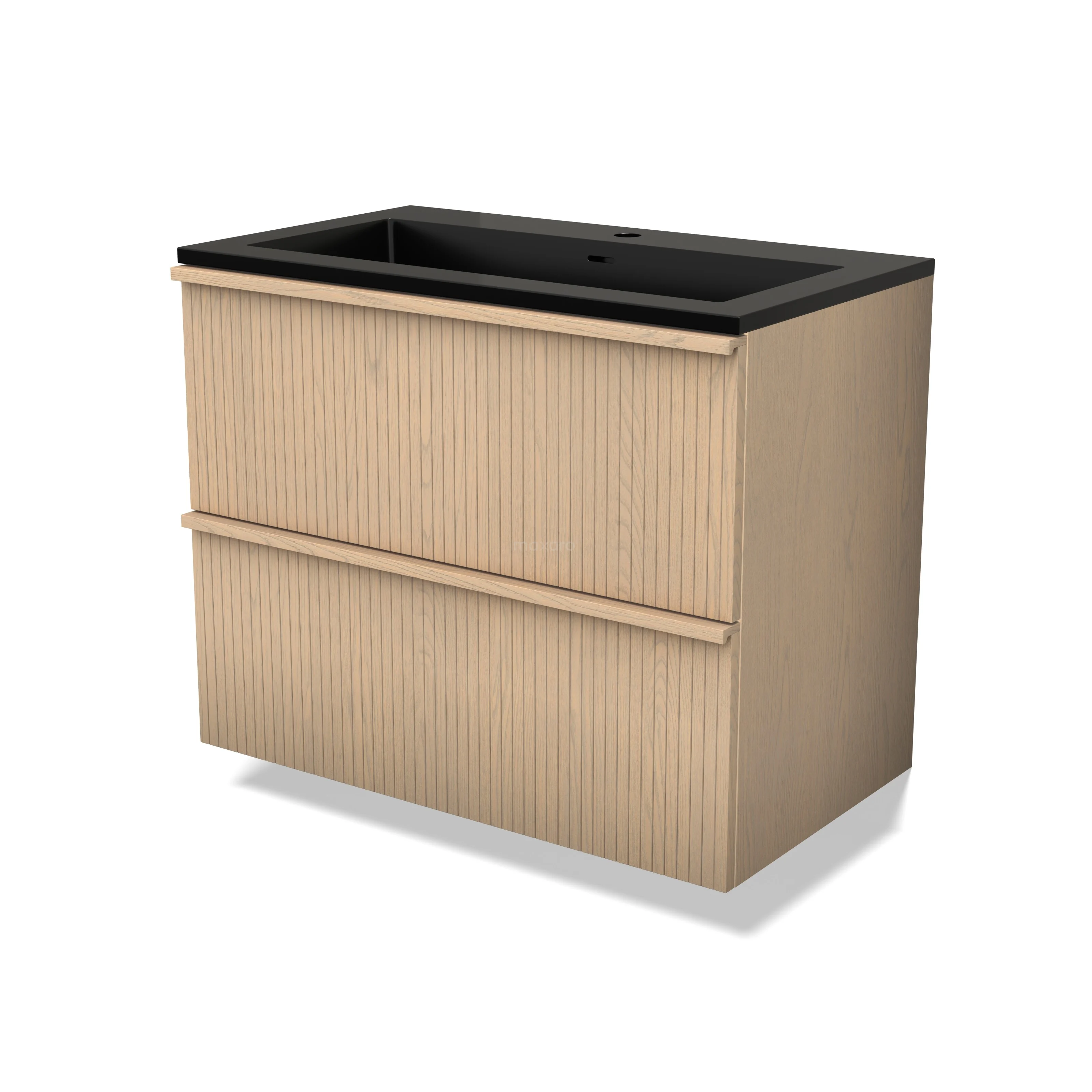 Modulo Plus Bathroom furniture with sink | 80 cm Natural oak Ribbing front Quartz 2 Stacked drawers
