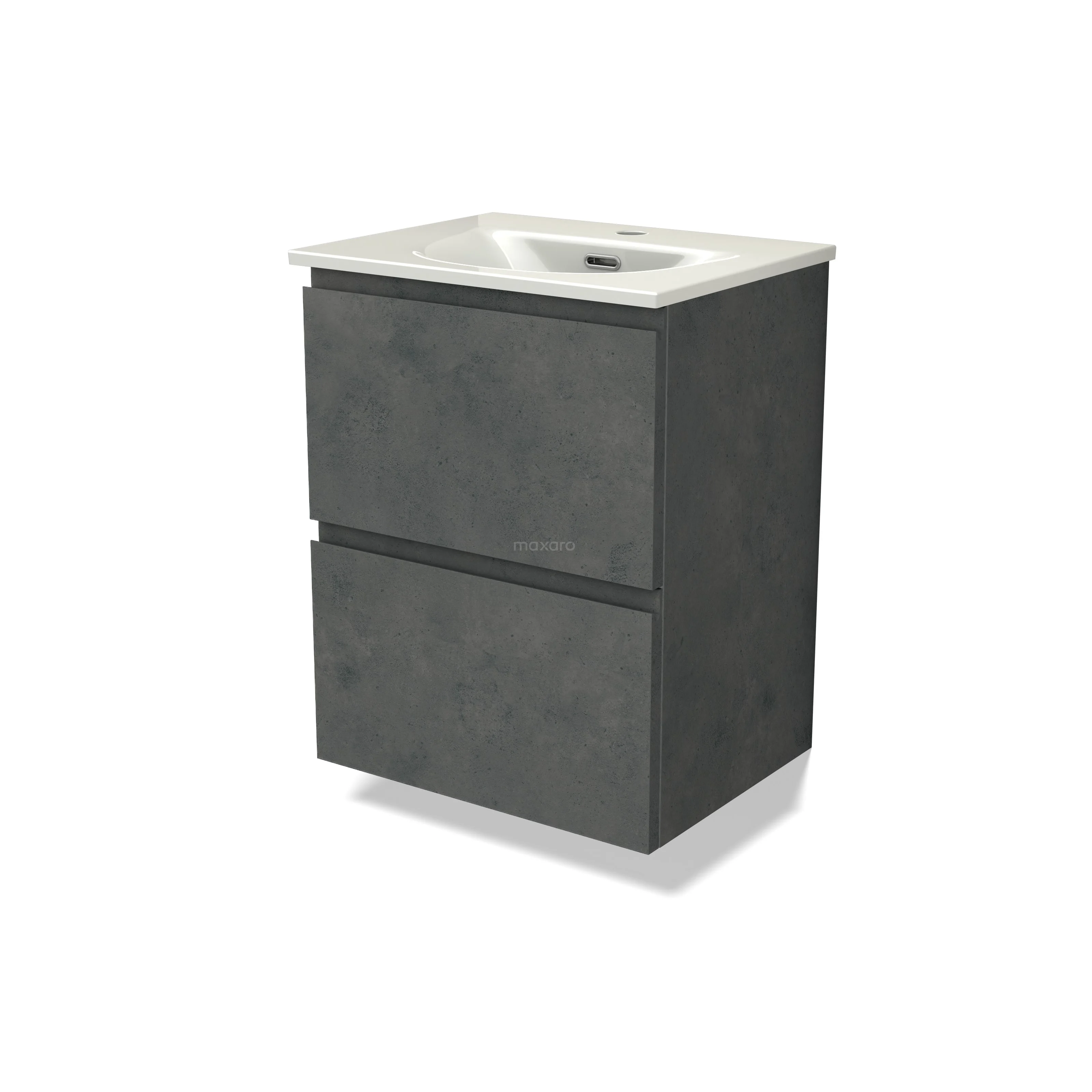 Modulo Slim Bathroom furniture with sink | 50 cm Dark grey concrete Handle-less front Ceramic 2 Stacked drawers