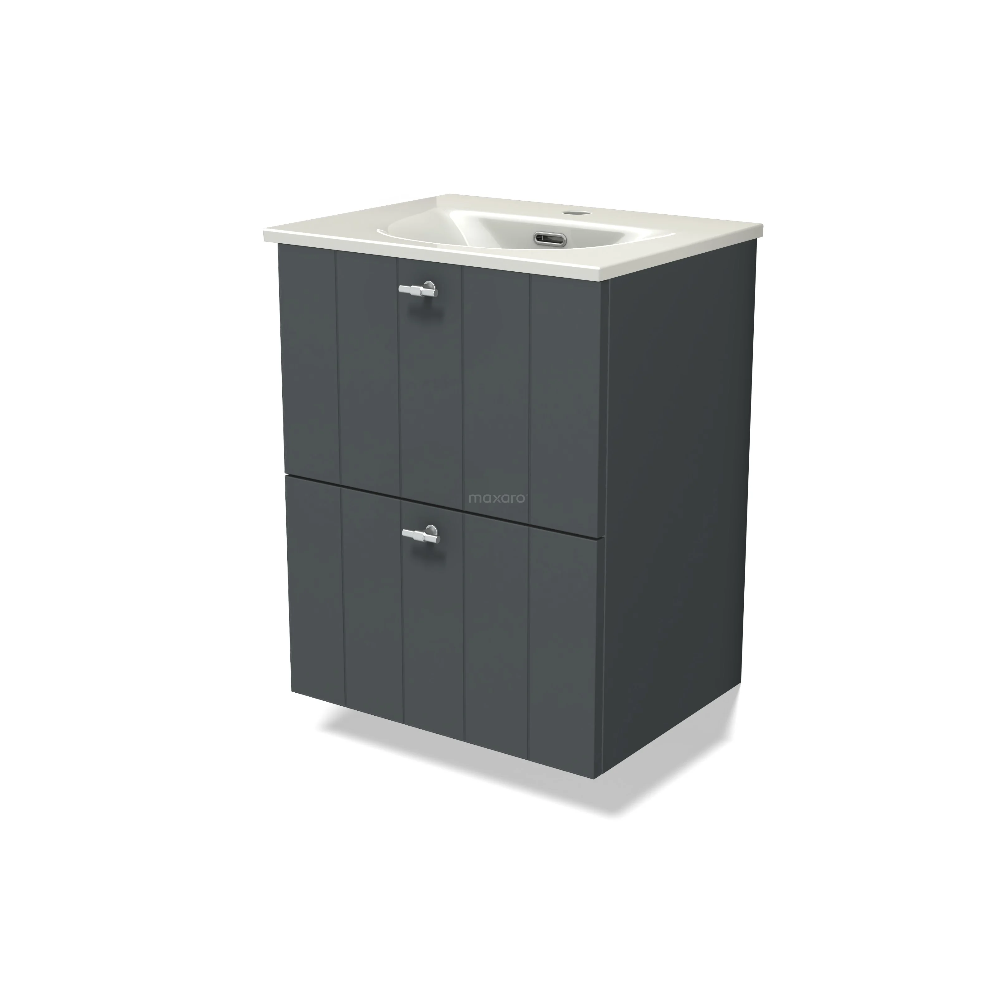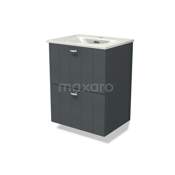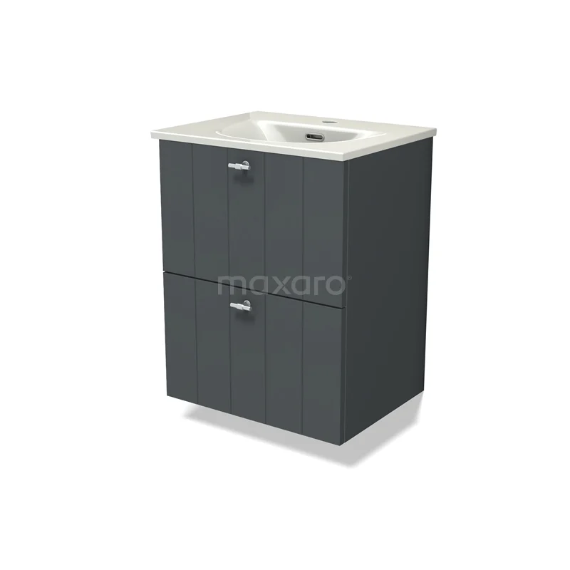 Modulo Slim Bathroom furniture with sink | 50 cm Dark grey Slat front Ceramic 2 Stacked drawers