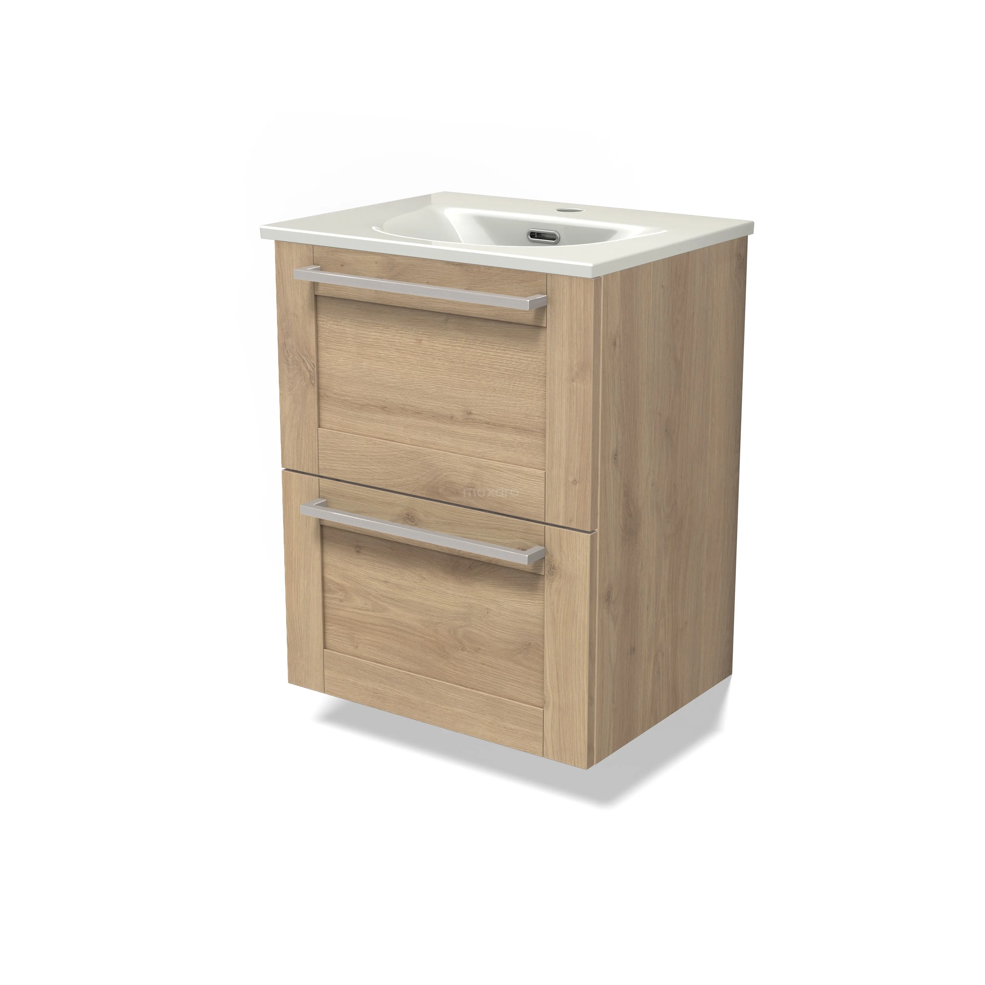 Modulo Slim Bathroom furniture with sink | 50 cm Light brown oak Frame front Ceramic 2 Stacked drawers BMW37-00900