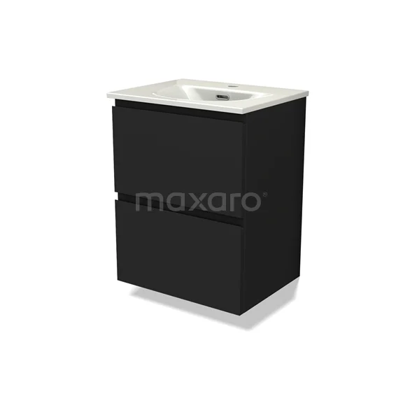 Modulo Slim Bathroom furniture with sink | 50 cm Matte black Handle-less front Ceramic 2 Stacked drawers