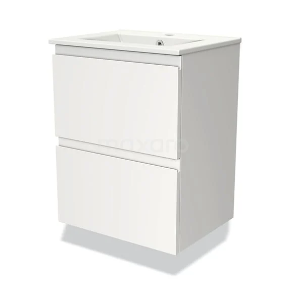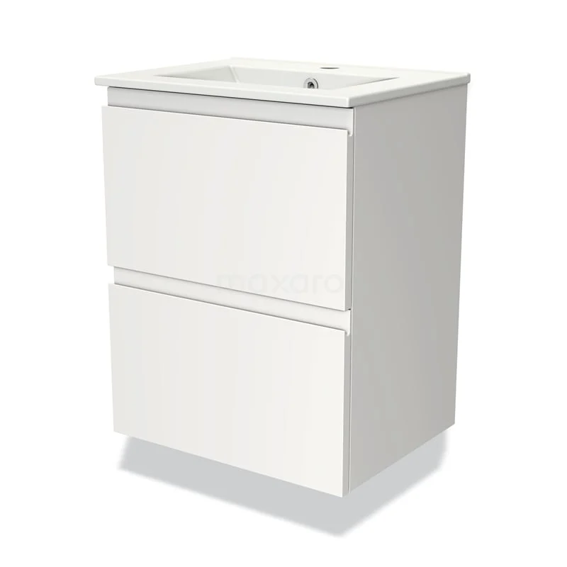 Modulo Slim Bathroom furniture with sink | 50 cm Matte white Handle-less front Ceramic 2 Stacked drawers