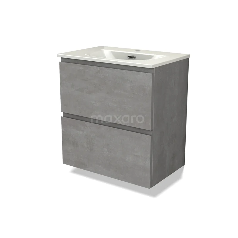 Modulo Slim Bathroom furniture with sink | 60 cm Light grey concrete Handle-less front Ceramic 2 Stacked drawers