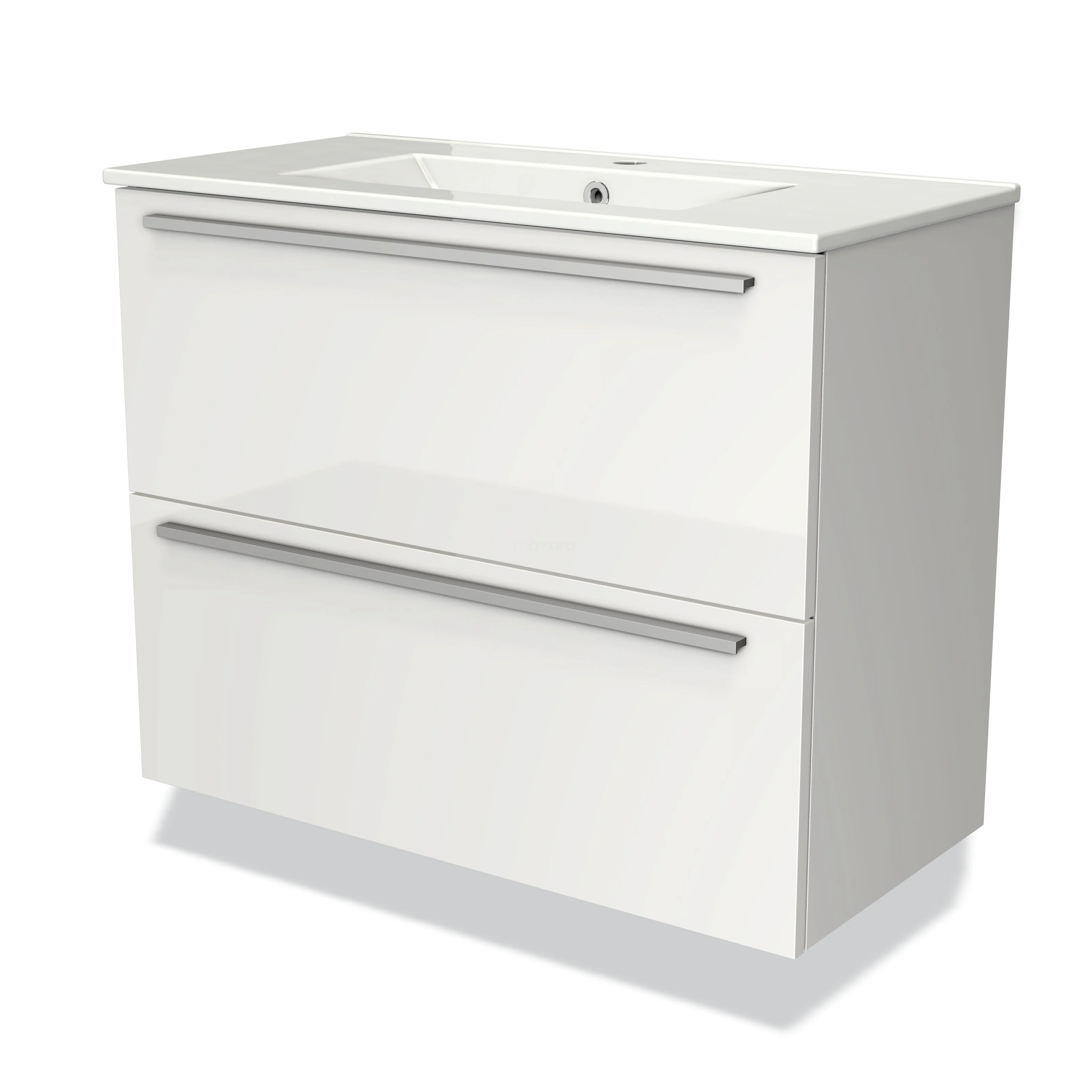 Modulo Slim Bathroom furniture with sink | 80 cm High-gloss white Flat front Ceramic 2 Stacked drawers