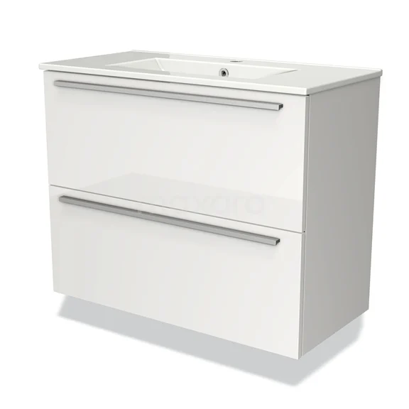 Stylish design The stylish design makes this bathroom unit the eye-catcher of your bathroom. The base cabinet features a flat front and has a high-gloss white finish. This colour has a modern appeal and gives the unit a fresh look and feel. In addition, the flat front provides a timeless touch. You need to add the handles yourself. These are available in different colours and shapes.
