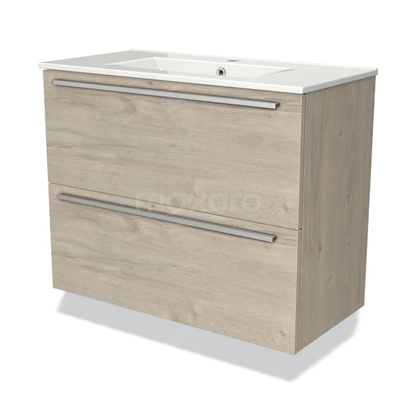 Modulo Slim Bathroom furniture with sink | 80 cm Light grey oak Flat front Ceramic 2 Stacked drawers
