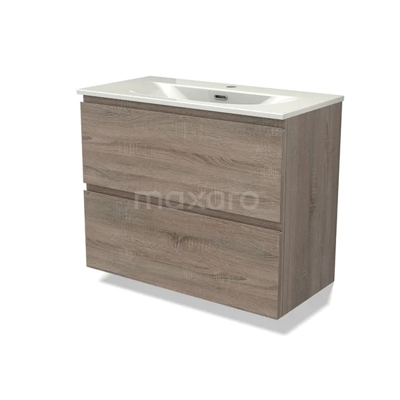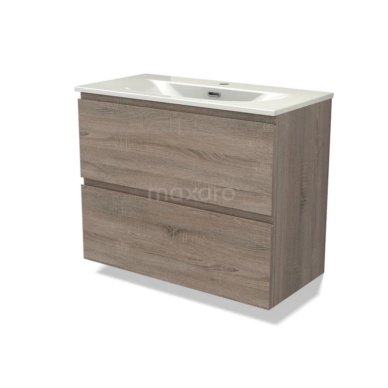Modulo Slim Bathroom furniture with sink | 80 cm Oak Handle-less front Ceramic 2 Stacked drawers