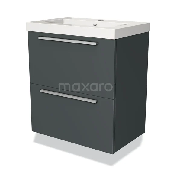 Modulo Slim Bathroom furniture with sink | 60 cm Dark grey Flat front Mineral marble 2 Stacked drawers