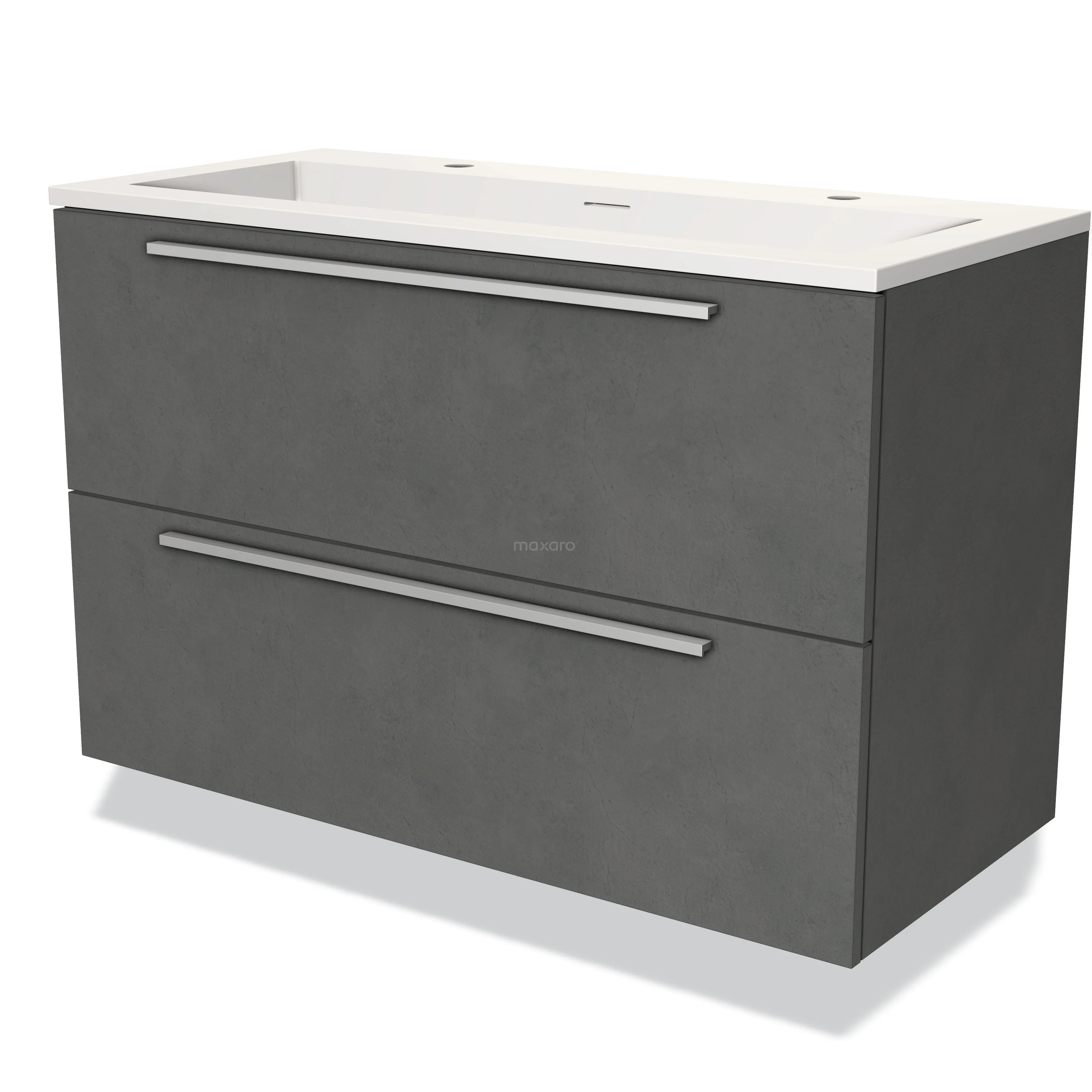 Modulo Bathroom furniture with sink | 100 cm Dark grey concrete Flat front Solid surface 2 Stacked drawers