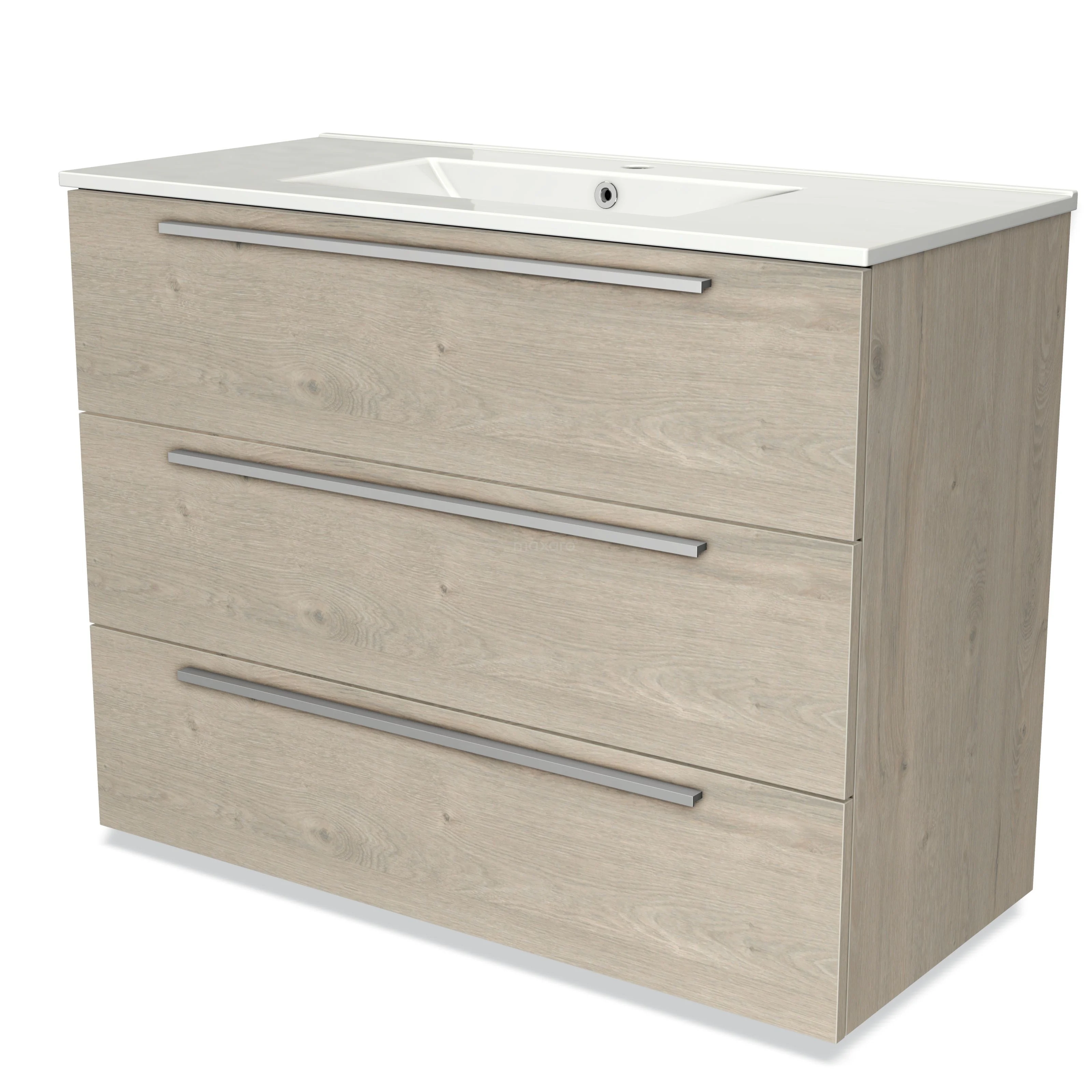 Modulo Bathroom furniture with sink | 100 cm Light grey oak Flat front Ceramic 3 drawers