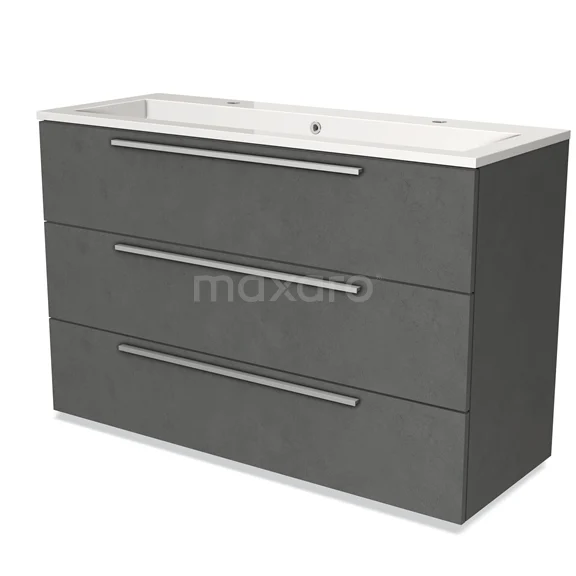 Modulo Bathroom furniture with sink | 120 cm Dark grey concrete Flat front Mineral marble 3 drawers