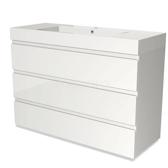 Modulo Bathroom furniture with sink | 120 cm High-gloss white Handle-less front Mineral marble 3 drawers
