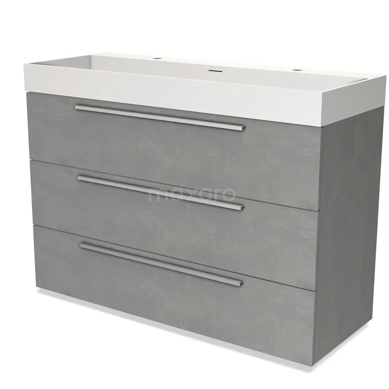 Modulo Bathroom furniture with sink | 120 cm Light grey concrete Flat front Solid surface 3 drawers