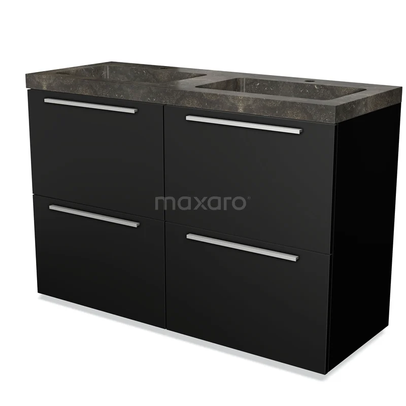 Modulo Bathroom furniture with sink | 120 cm Matte black Flat front Natural stone 4 high drawers