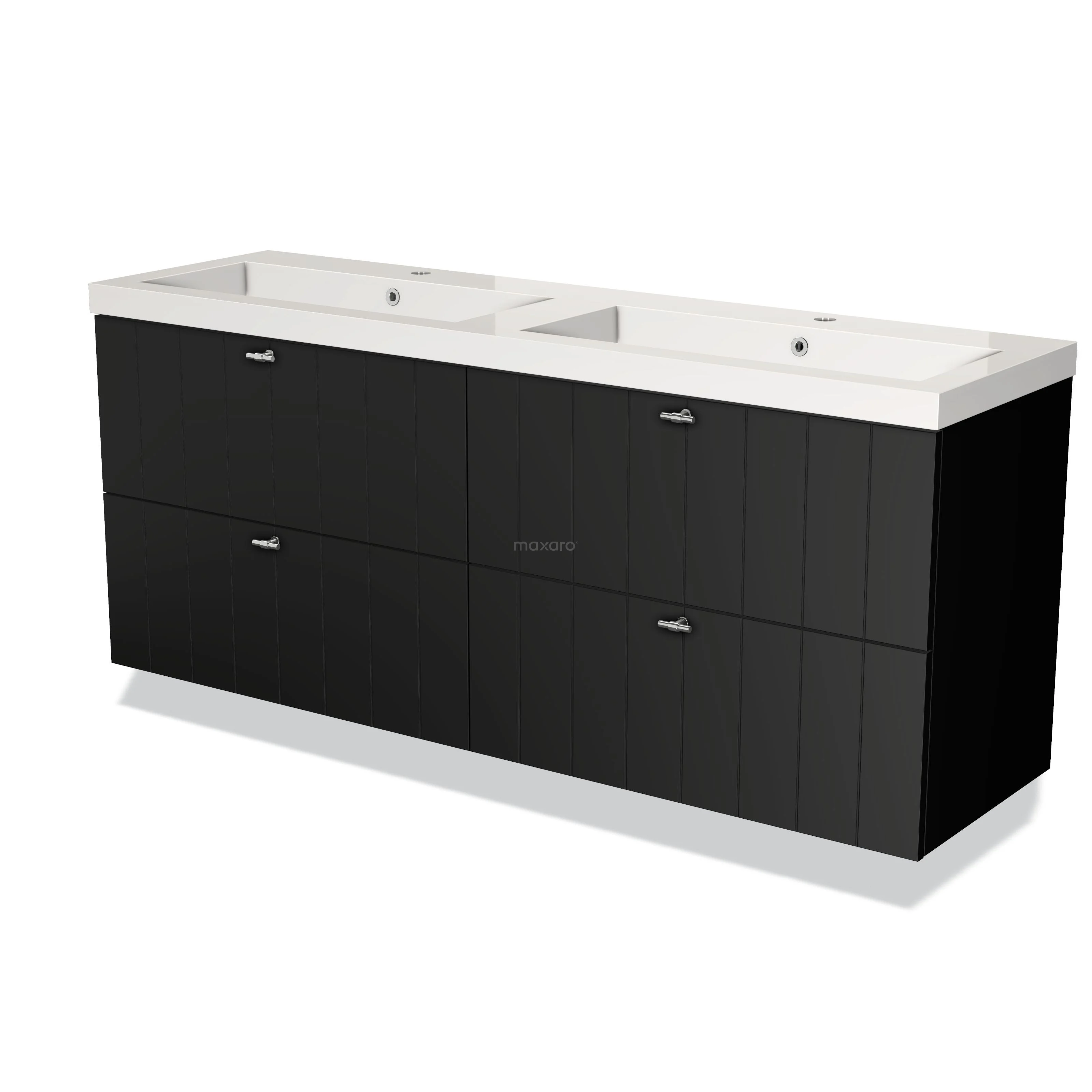 Modulo Bathroom furniture with sink | 160 cm Matte black Slat front Mineral marble 4 drawers