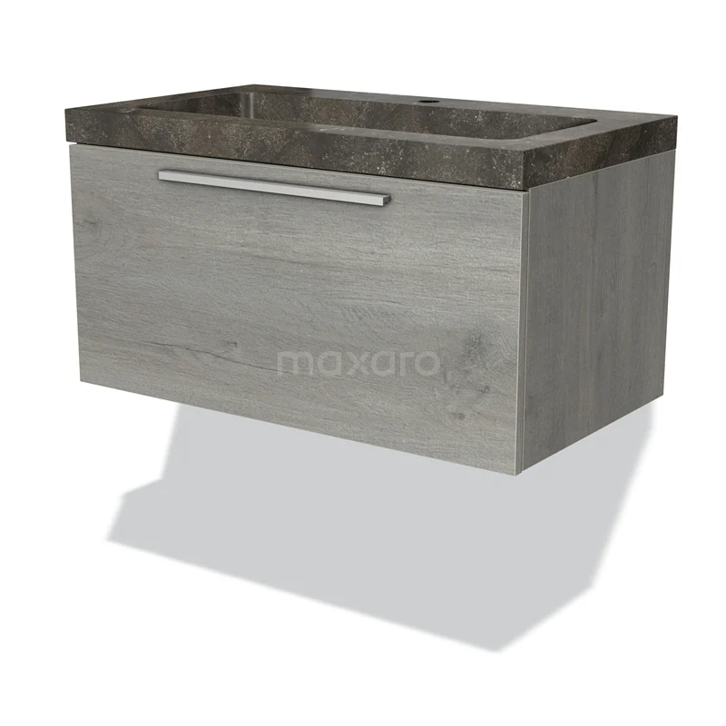 Modulo Bathroom furniture with sink | 80 cm Grey oak Flat front Natural stone 1 drawer