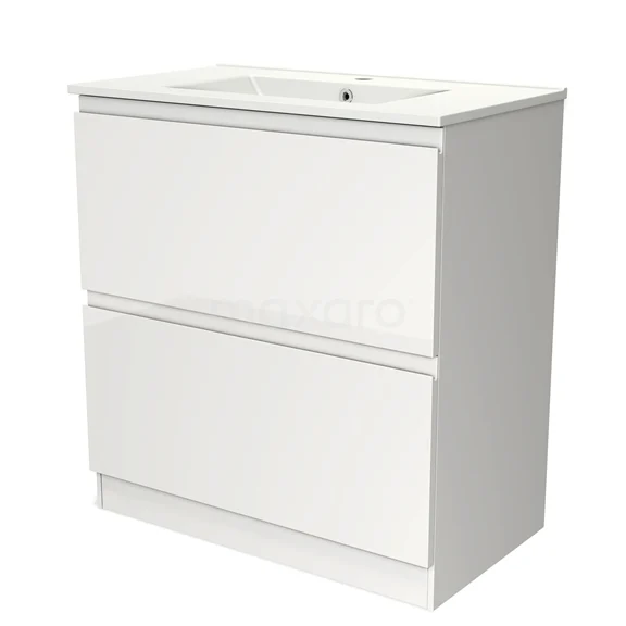 Modulo Bathroom furniture with sink | 80 cm High-gloss white Handle-less front Ceramic 2 high drawers standing drawers under each other