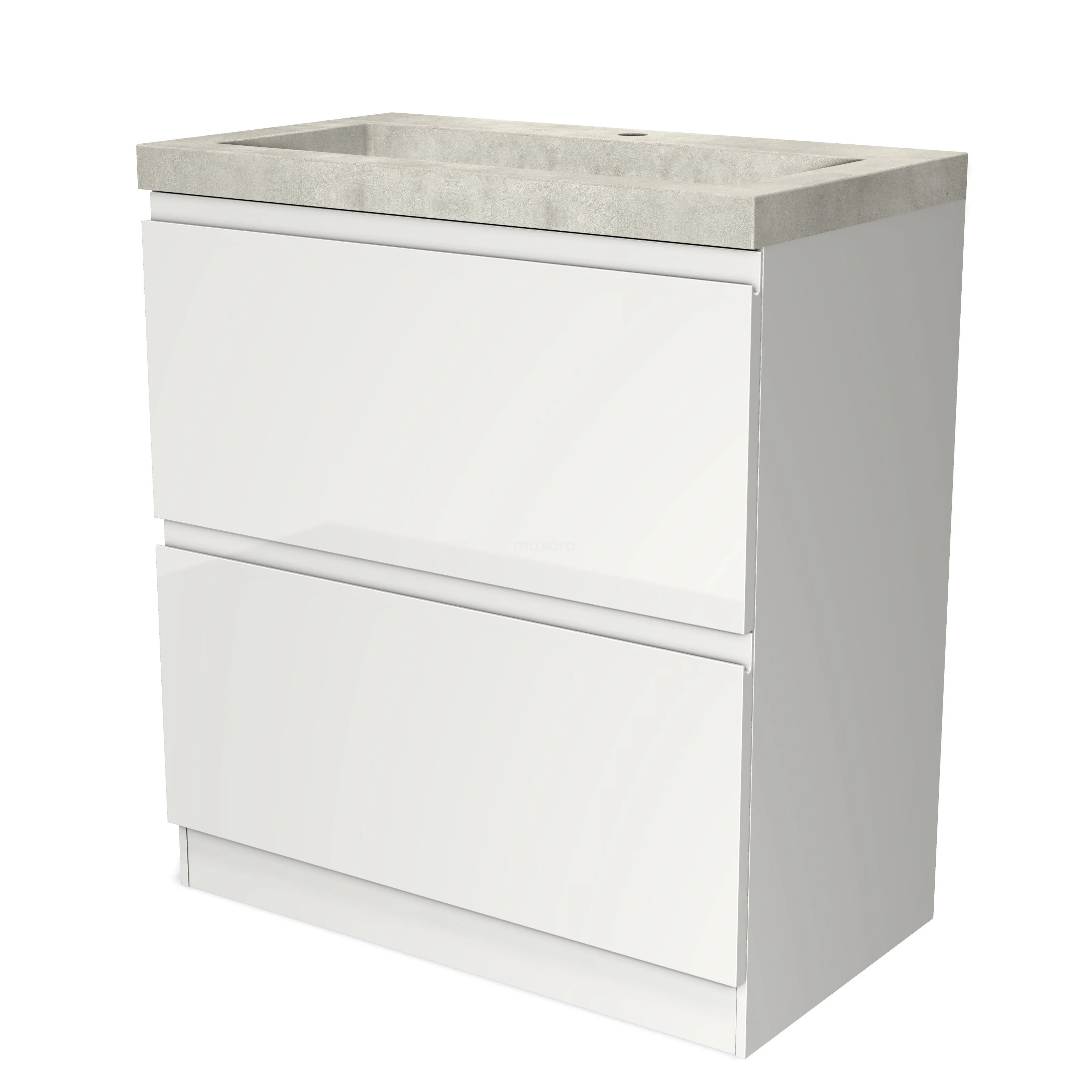 Modulo Bathroom furniture with sink | 80 cm High-gloss white Handle-less front Concrete 2 high drawers standing drawers under each other