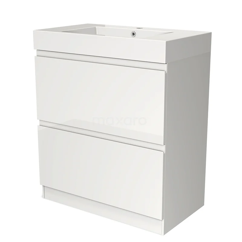 Modulo Bathroom furniture with sink | 80 cm High-gloss white Handle-less front Mineral marble 2 high drawers standing drawers under each other