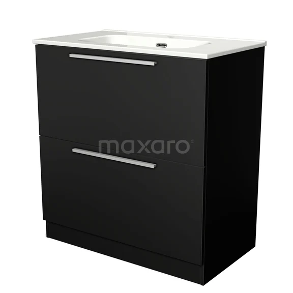 Modulo Bathroom furniture with sink | 80 cm Matte black Flat front Ceramic 2 high drawers standing drawers under each other