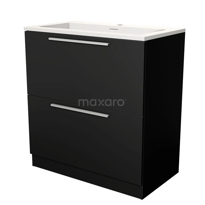 Modulo Bathroom furniture with sink | 80 cm Matte black Flat front Solid surface 2 high drawers standing drawers under each other